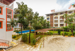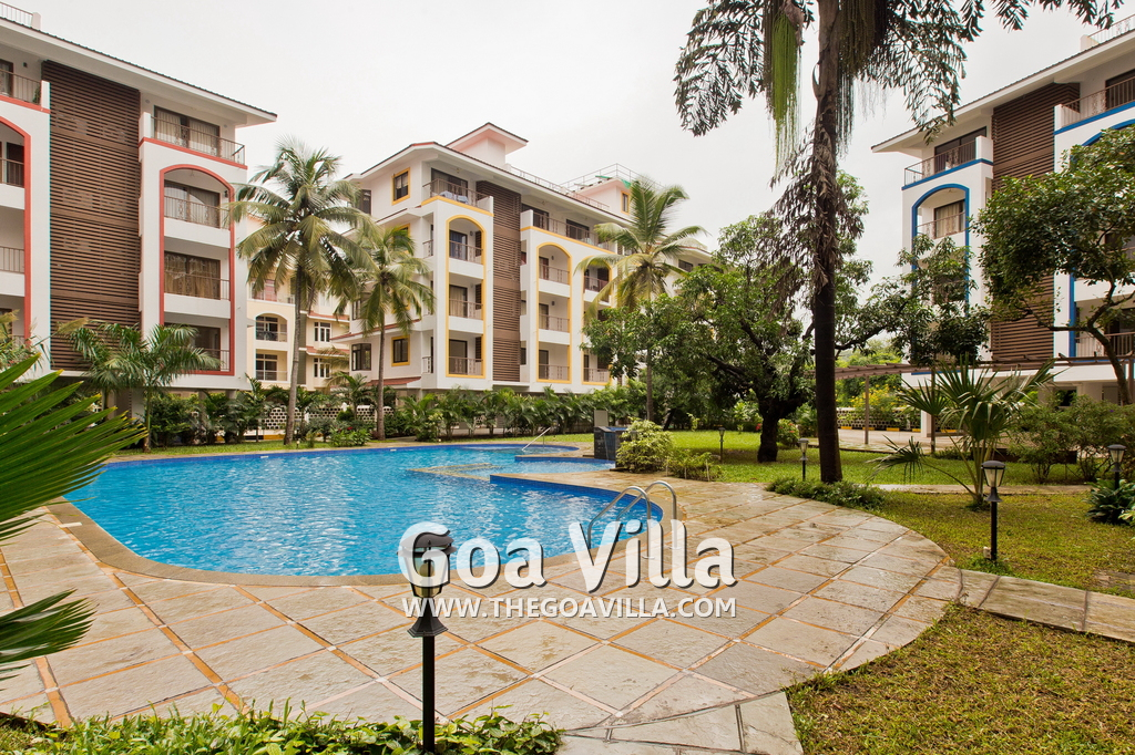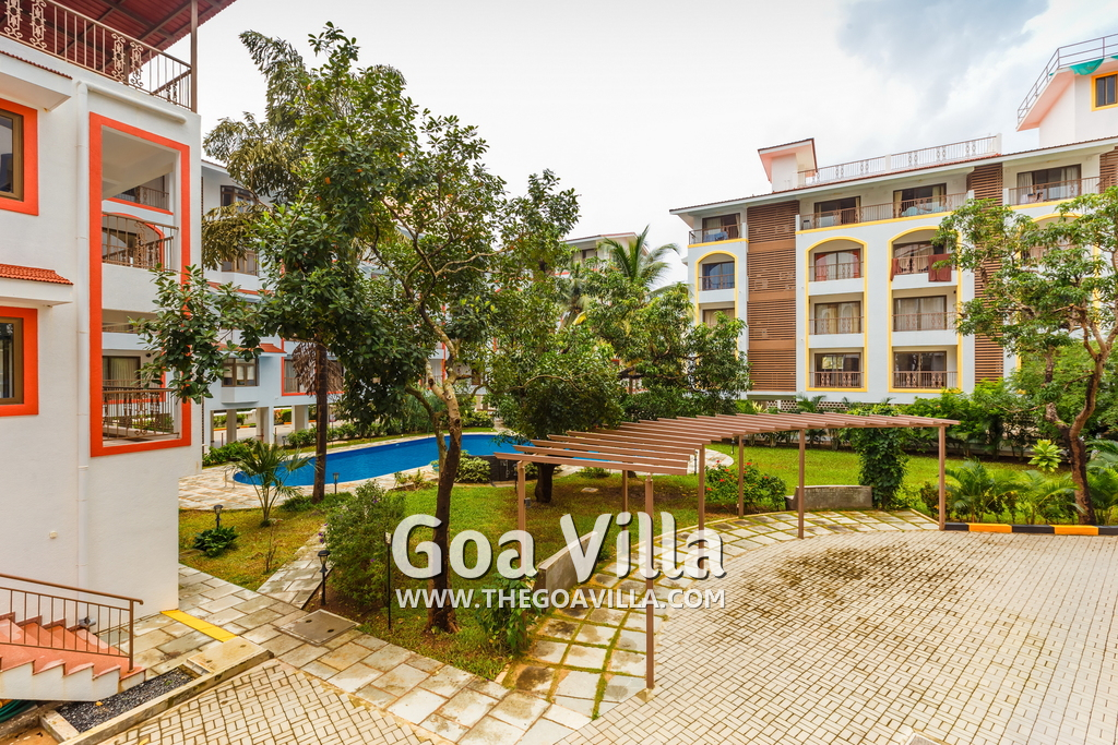 The apartment complex is in a prime location in Goa. Candolim is extremely popular with tourists. The beach has shacks with sun beds, restaurants, bars, pubs, and plenty of water sport options. Elsewhere in Candolim, you will find shops, department stores, banks, ATMs, nightclubs, massage parlors, tattoo stores, car and bike rentals. The tourist infrastructure is extremely well developed. In spite of a developed tourist infrastructure, there is still a lot of greenery around the property.