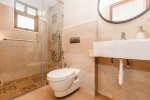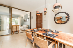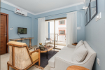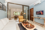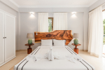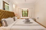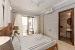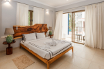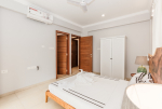 Bedrooms – There are 2 en-suite bedrooms in this apartment. They are both air-conditioned. The bedrooms have large comfortable beds, side tables with lamp shades, wardrobe, sitting area, and a rug. There are attached balconies with seating, overlooking greenery and the swimming pool. Whitewashed walls provide a soothing touch, allowing a good sleep.