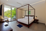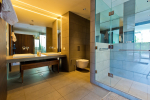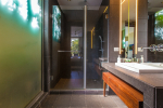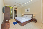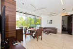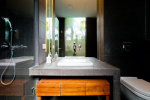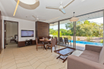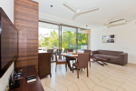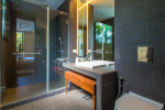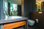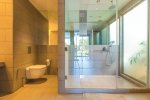 Living Room – Located between the two bedrooms, the living room has a comfortable sofa, low center table, TV-unit and satellite television. A large ceiling to floor glass door leads to the swimming pool. It is a very good place to enjoy nature views and spend a quiet time socializing.