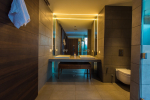 Bathrooms – The bathrooms have modern faucets, single or double sinks, large mirror, paper roll, and shower cubicle with hand shower. Toiletries, shower and pool towels are provided.