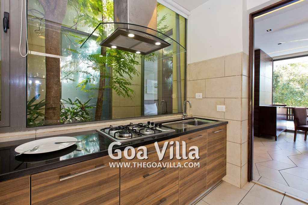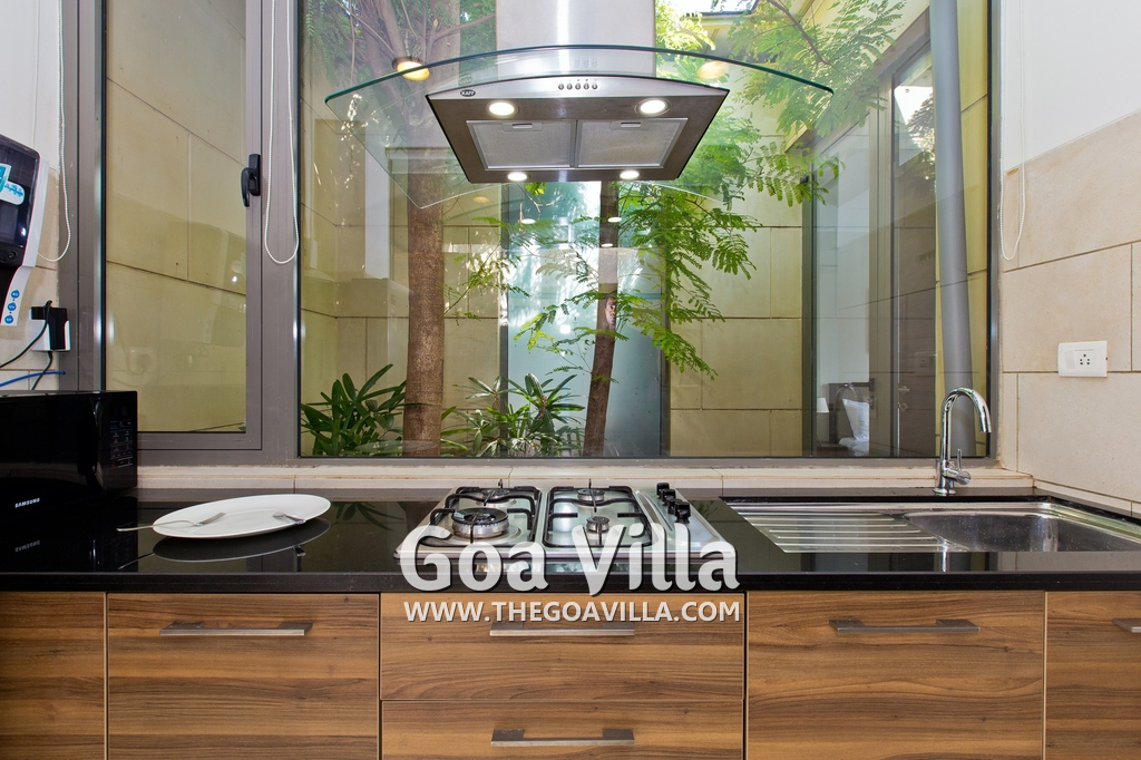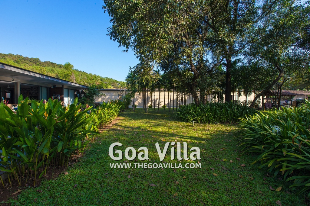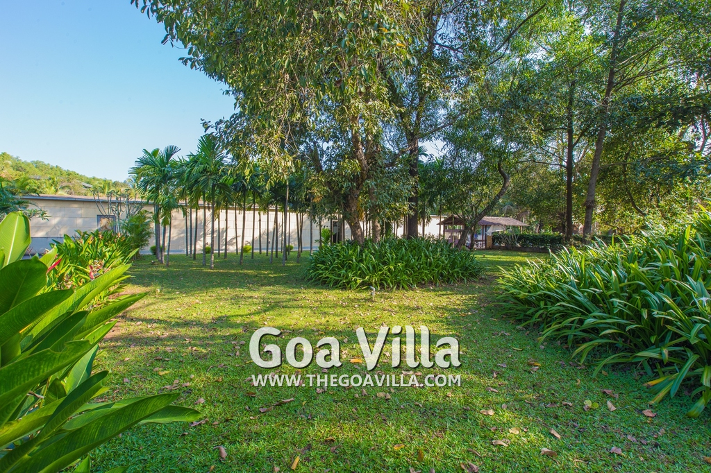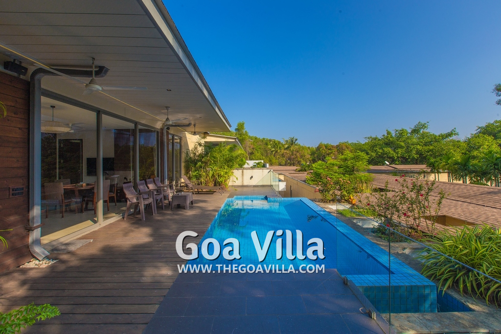 Swimming Pool – This holiday villa for rent has a beautiful private swimming pool overlooking the small Parra Hills. The pool has a shallow end for the kids. There is lush greenery all around. Chairs and table on the pool deck where you can relax after taking a dip and can even have some snacks. There are sun beds too.