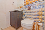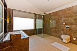 Bathrooms – Molly Villa has big bathrooms with modern faucets. There are his and hers sinks, a linen cupboard, towel rack, mattress, a bathtub and shower cubicle with rain shower. Toiletries are provided. Beautiful tiled walls. There is also a common bathroom where the washing machine is kept.