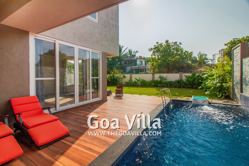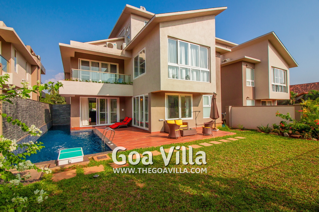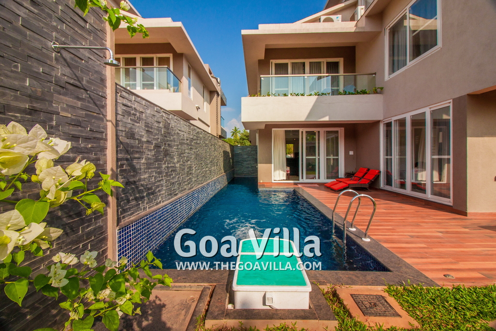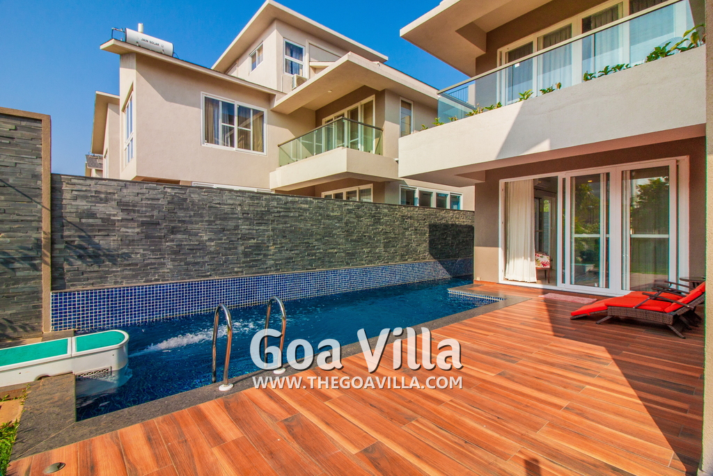 4-bedroom modern villa in a gated community with plush interiors. Private swimming pool, landscaped garden, chef service, housekeeping, security, internet. Modern luxuries and amenities for a luxurious vacation. Close to top Goa attractions.