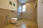Nature, luxury, and fun await you at this private villa for rent at Morjim in North Goa. Morjim Villa is a stunning 5-bedroom property with a private swimming pool, a lovely deck with sun beds and private sitting, balcony, living room, dining area, and a fully equipped kitchen. The bedrooms are all air-conditioned and en-suite. Complimentary breakfast, housekeeping, laundry service, free internet. Enjoy resort-like comforts and luxuries in a private property. It is like your personal home, away from home.