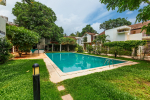 Swimming Pool – The private pool is at the center of the villa complex with tall trees all around. There is a small manicured garden next to the swimming pool.