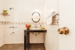 Bathrooms – The bathrooms are simple, yet functional. Modern sink and faucets, towel rack, mirror, plants, and shower area.