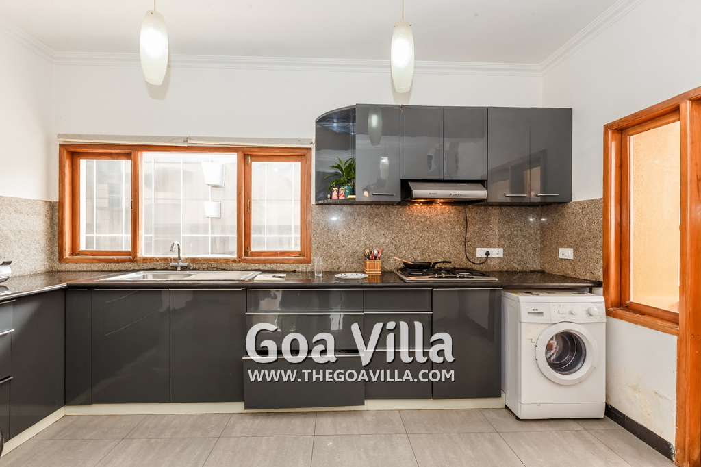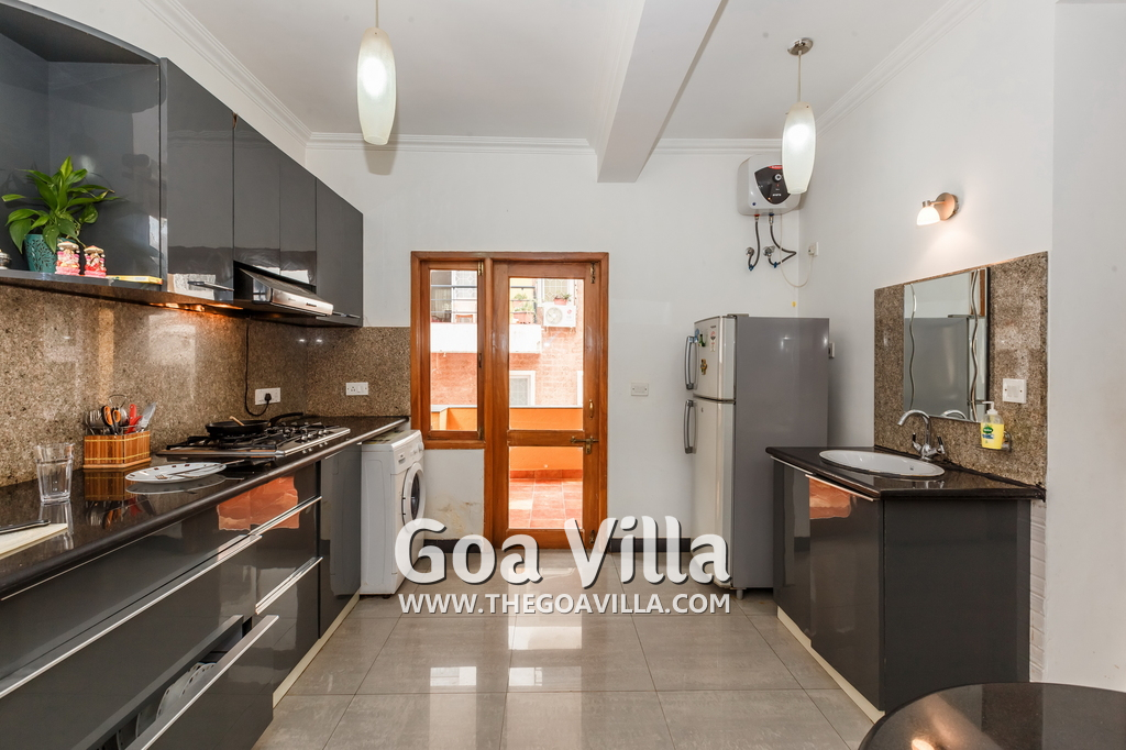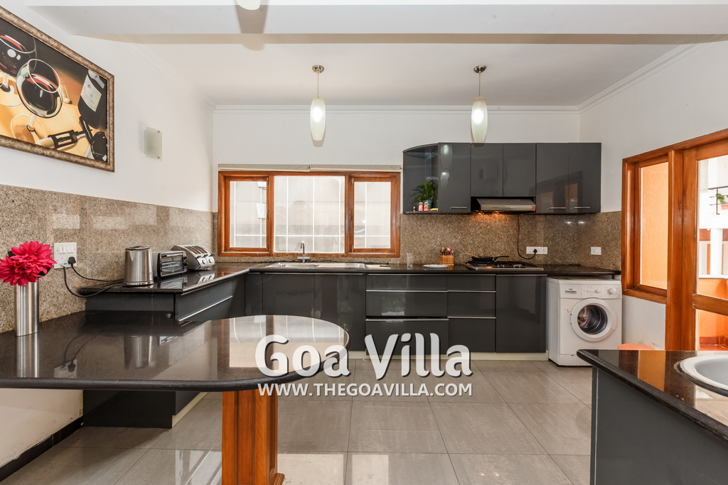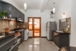 Kitchen – The kitchen is fully equipped with a cooking station, chimney, toaster, large refrigerator, water purifier, microwave, juicer, and washing machine. The dining area is just beside the kitchen.