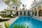 There are 4 en-suite bedrooms at this property, all air conditioned, and fully furnished. Each bedroom has distinct décor. They are sophisticated with antique beds, heritage furniture, stained glass window, and modern bathrooms. The living room is classy and cozy, perfect for relaxing after returning from a day trip or a drink in the evening. There is a small landscaped lawn and a private swimming pool as well in this villa.