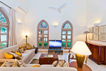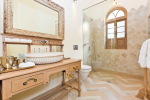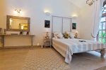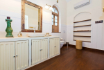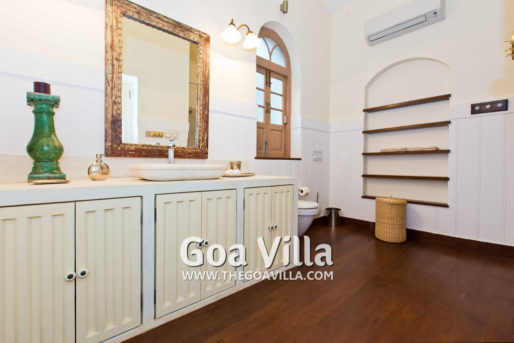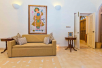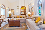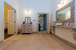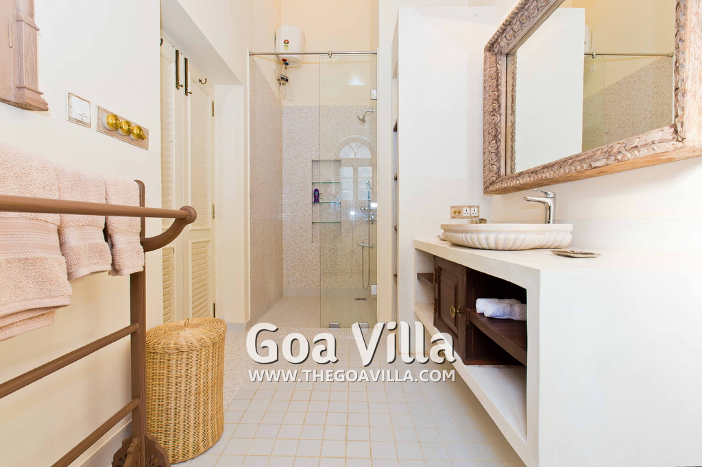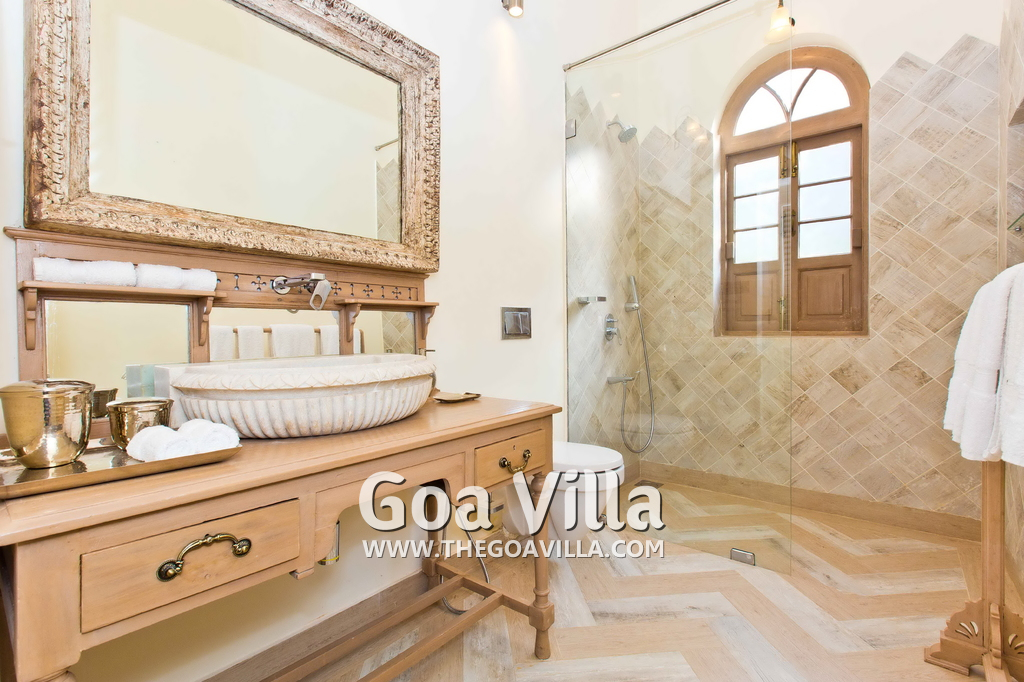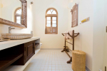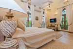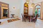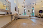 There are 4 stunning en-suite bedrooms in this villa for rent all with distinct décor. They all have classy furniture, objects of art, paintings, beautiful lighting, rugs, clean hand-finished walls, and air conditioning. The rooms are the perfect blend of modern amenities and heritage class and sophistication. The attached baths have beautiful faucets and separate shower areas. Toiletries are provided.