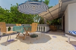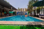The furnishing in the suite room is similar to the penthouse and has a balcony with a seating area the washrooms are en suite. Tables are set up around the poolside where the guests can have their meals or simply relax.