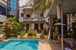 The guest house is a cozy spot only 500 meters from Candolim Beach. There are three standard rooms, three suites, and two penthouses, all located on a long, quiet, private property. The guest house has 24 hour security. There is also a shared swimming pool you can use at the guest house property so you can be in quiet and lovely surroundings. The staff is friendly, cooperative and always available to help make your stay enjoyable.