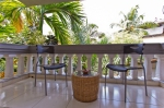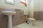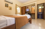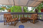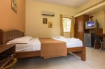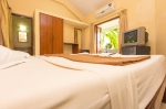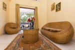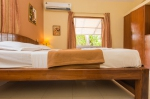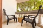 The living area in the penthouse is furnished with cane furniture and has French windows that lead out to a balcony. There is a queen sized bed and mattress, a wardrobe, full length mirror, mini fridge, T.V. the room is air conditioned airy and bright. The washroom is en suite and has a washbasin, shower and European toilet.
