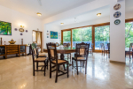 Dining, Kitchen – The villa’s kitchen is well-equipped with a large refrigerator, microwave, toaster, and water purifier. The dining area is part of the living room. the round antique table provides sitting for 7 guests. Utensils, glassware and tableware is provided.