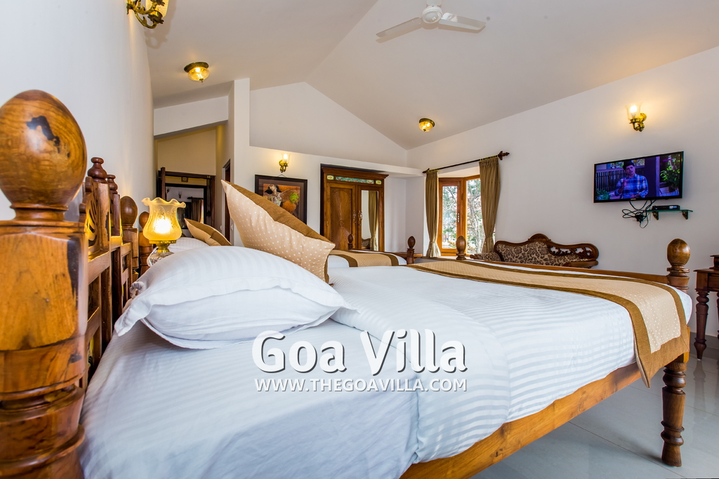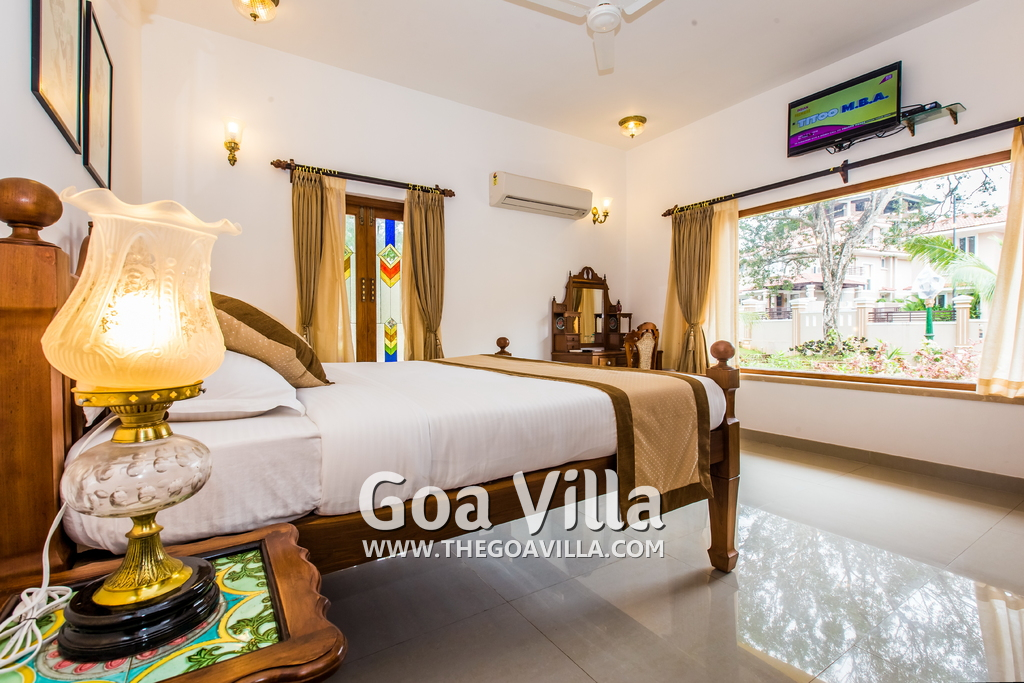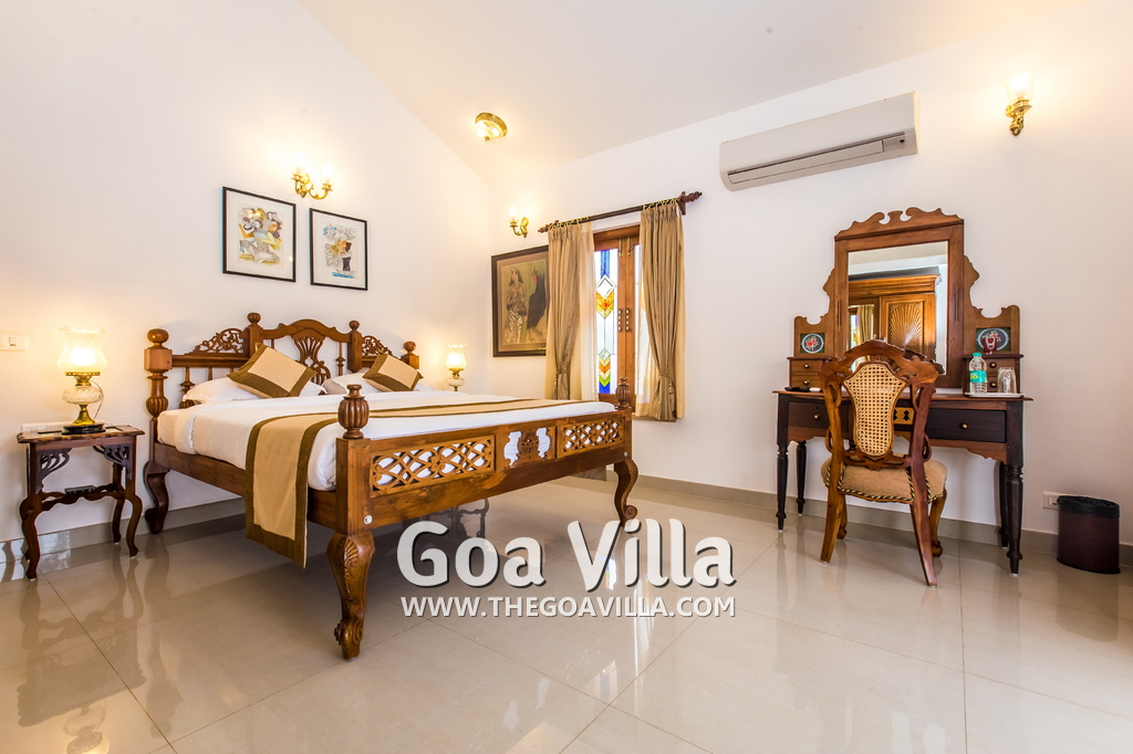 A villa vacation is all about luxury and privacy. Stay away from the beach, which can get very crowded, and yet close enough to enjoy sea life. Sati Villa is a wonderful 6-bedroom private holiday villa for rent at Porvorim in North Goa. The Candolim beach, very popular with tourists, is only 5 kilometers from this property. The bedrooms all have antique wooden Portuguese and Victorian furniture. There is a private swimming pool and a cozy living room. You will find all modern comforts in this villa, plus the privacy of your own home here.