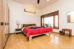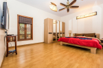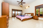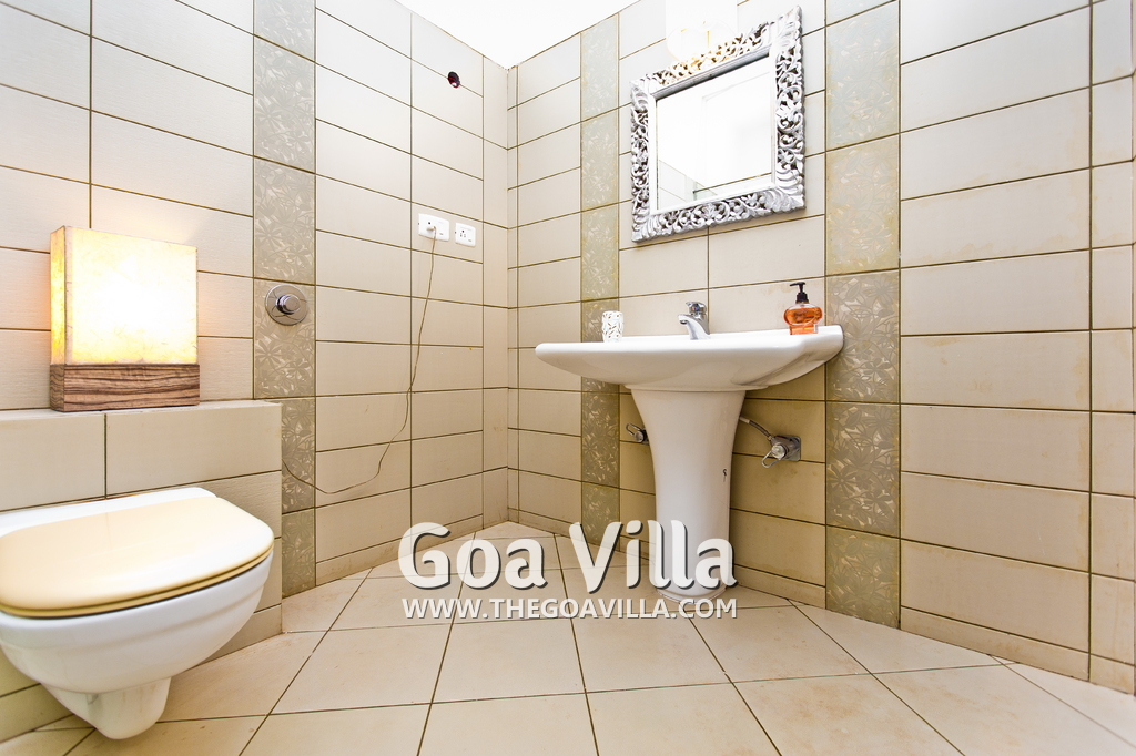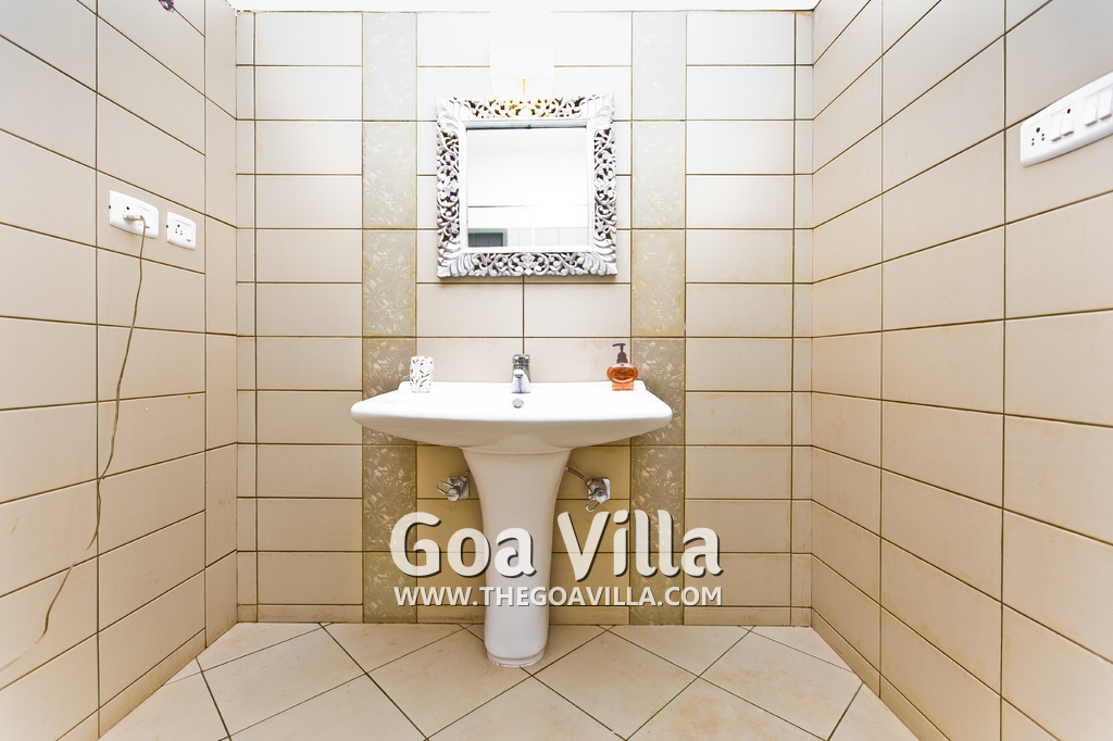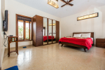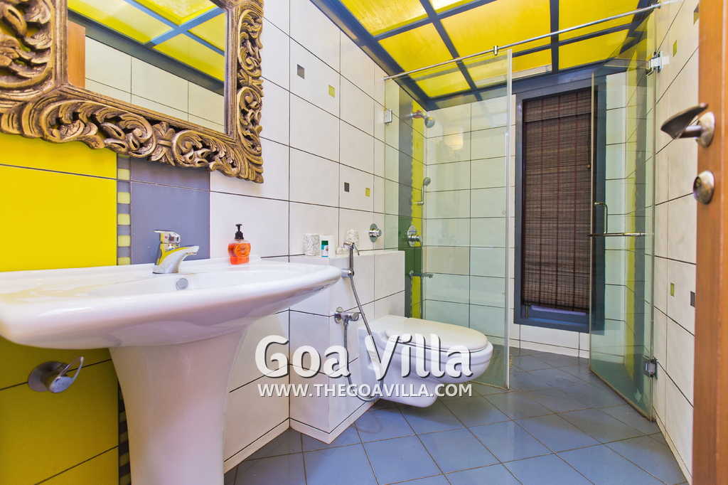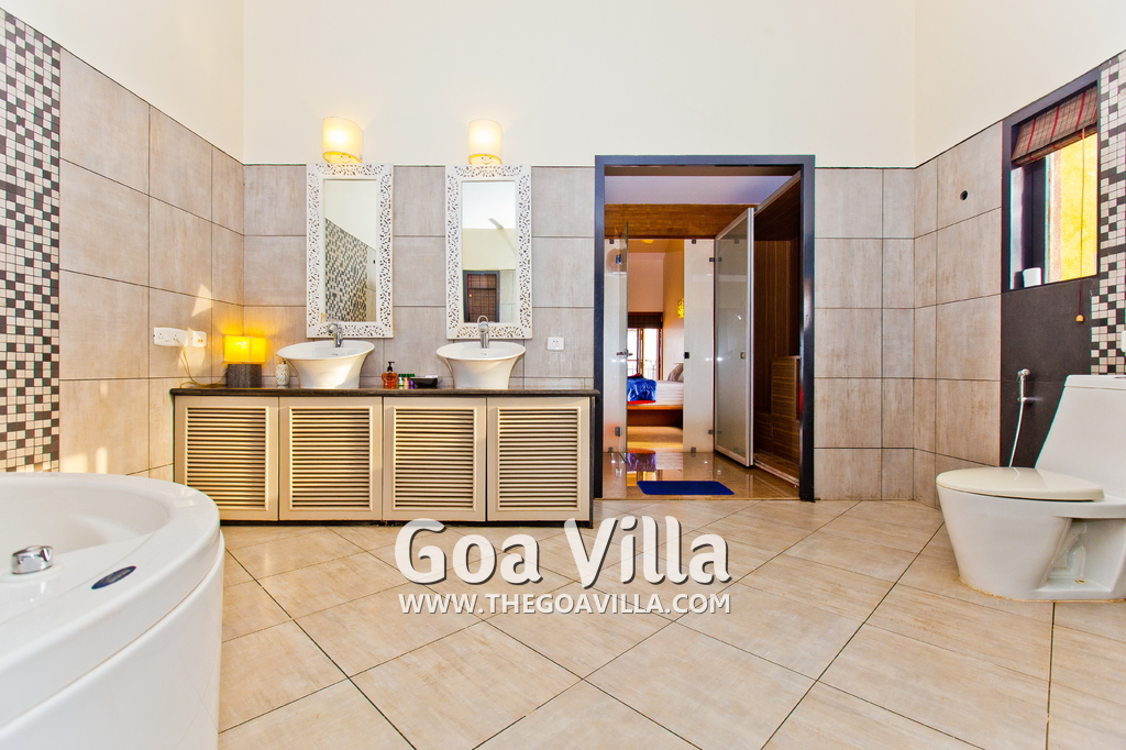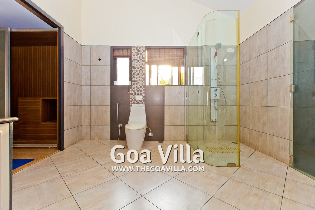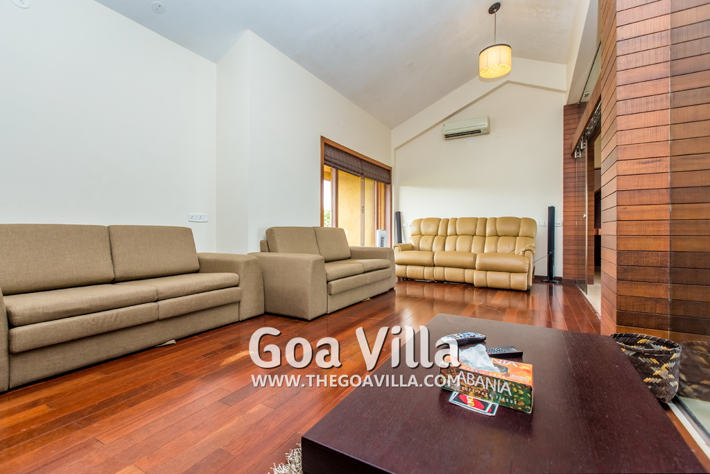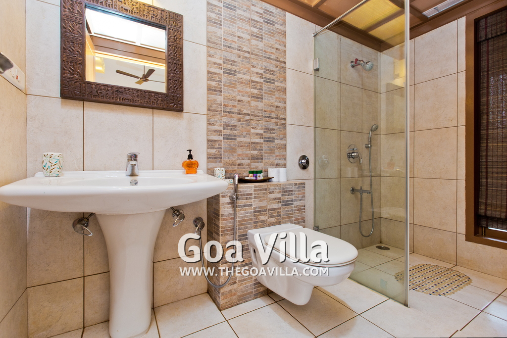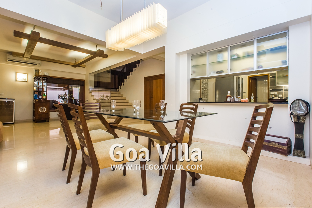 - Every bedroom of this villa in Goa has an attached bathroom, air conditioning system and large double bed with thick and comfortable mattress/ bedding. First bedroom is on the ground floor and can be accessed from the living room. Remaining three bedrooms are on the first floor and can be accessed by stairs.Two of the bedrooms open to the attached balconies which offer magical views of the gigantic Arabian Sea. The rooms are well furnished with wardrobe, chairs, TV and dressers.