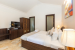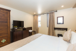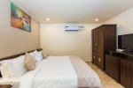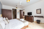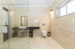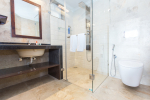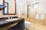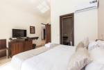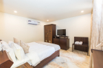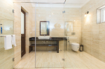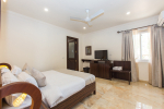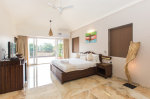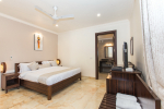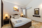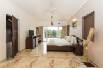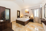Bedrooms – All 6 bedrooms are en suite and air-conditioned. 4 of the 6 bedrooms are on the ground floor, and the remaining 2 are on the first floor. Large bedrooms with modern furniture, comfortable bed, linen, extra cushions, curtain, flat-screen television, marble flooring, large French windows, and cupboard. All bedrooms have tea/coffee maker as well.