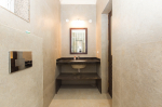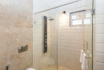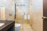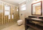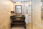Bathrooms – Modern faucets, large mirror, separate shower area, toiletries.