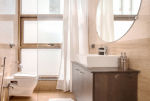 Bathrooms – Large bathrooms with modern faucet, mirror, toiletries, separate changing section, cupboard, and shower area. There is also a common bathroom.