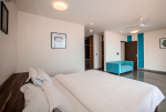 Bedrooms – All 4 bedrooms are air-conditioned. 2 bedrooms are on the ground floor, and the others in the 1st floor, with large balconies looking out into the sea and river. Ground floor bedrooms open to the lawn and pool. Modern furniture. Large King-size beds, wardrobe, side table, painting on the wall. Balconies have sitting.