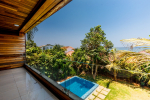 The villa has 4 bedrooms. A lawn and terrace where guests can relax while enjoying the view. There is a small private swimming pool overlooking the view. Bedrooms on the ground and first floor.