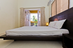 - Each bedroom has an Air-conditioner, a Queen bed, Fan, Mosquito Net, Wardrobe with full length mirror. And high ceilings and wide collaspable doors cum windows that open out into the balcony letting in a lot of brightness and coolness.