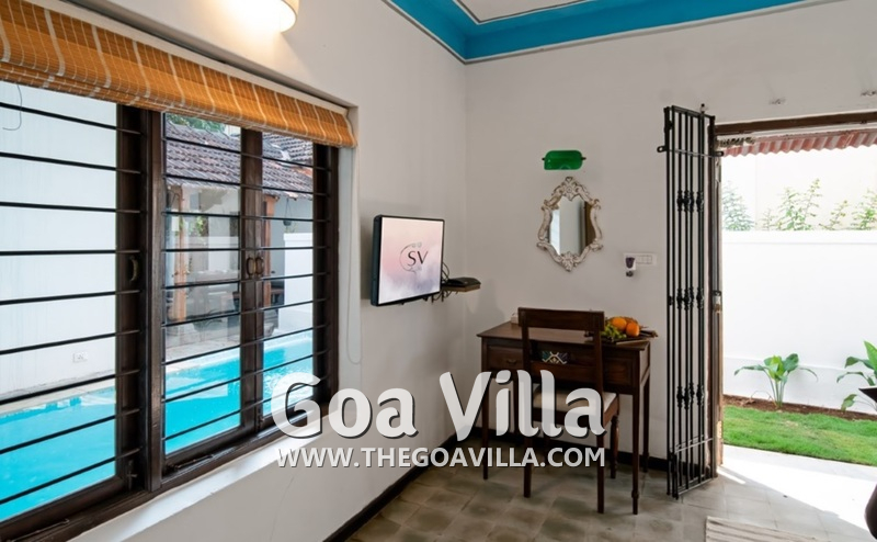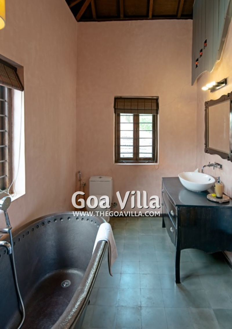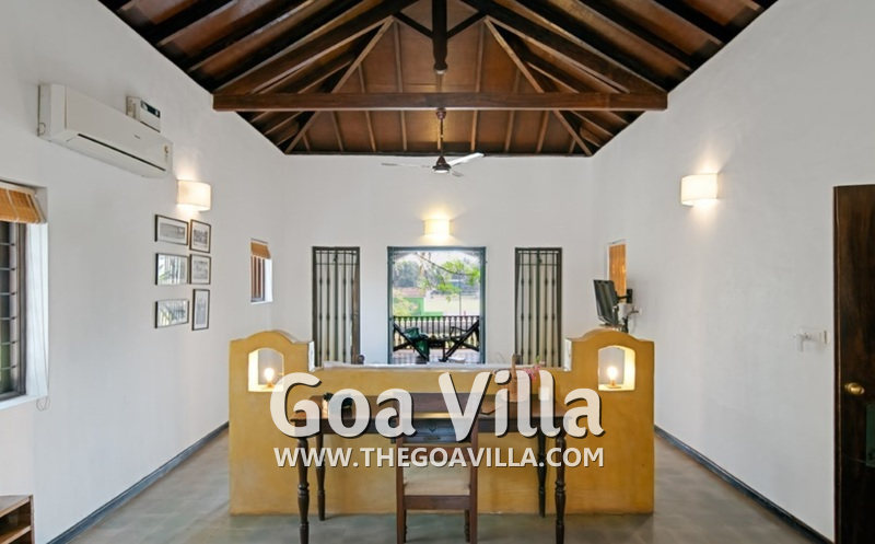 Villa Archangela is located in the evergreen village of Sangolda, which is close to Calangute in North Goa. The villa is surrounded by thousands of palms, forested hills, and traditional homes. It is next to a soccer field and because of this vast open field, you will get even wider panoramic views. Air-conditioned rooms, bathrooms with tubs, a private pool, well-equipped kitchen, housekeeping… this luxury villa for rent has it all! Stay within nature for a relaxing holiday. Enjoy Goa’s colonial charm.