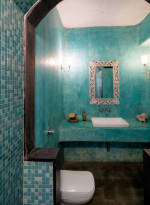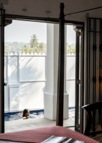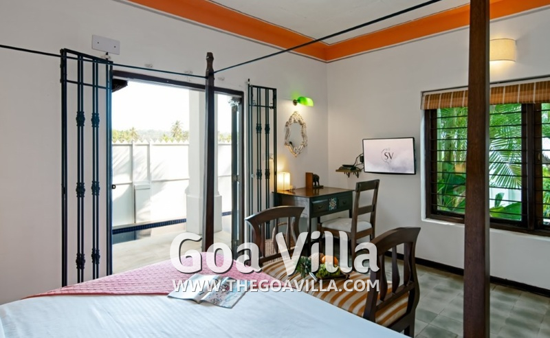 Bedrooms – This old Portuguese home has four bedrooms over two floors. The ground floor has three bedrooms, while the fourth, which is the master suite, in on the upper level. All of them feature large double beds. They all have study tables, seating areas, wardrobes, and televisions. Bedroom #1 has a classical décor. Bedroom #2 is modern and decorated with vibrant colors. The third bedroom has a four-poster antique bed and opens to the garden directly. The fourth bedroom also has a four-poster bed, but the overall décor is modern. So, all the four bedrooms in the house are distinct in their own ways.