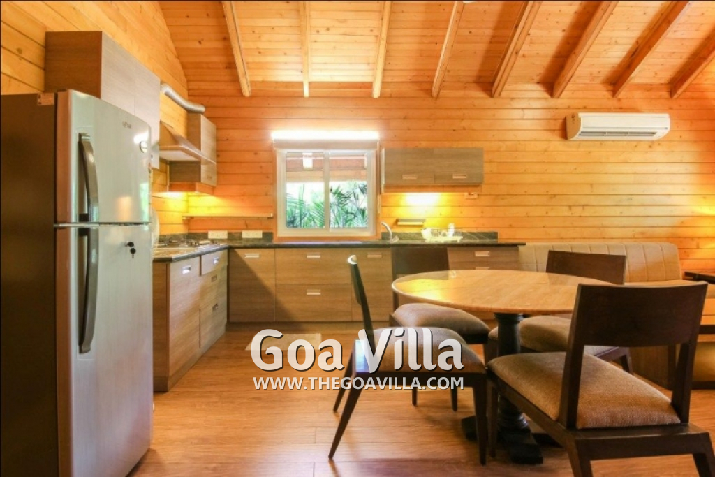 - The villa entrance opens to a large living room with soft sofas and a flat-screen TV extending with a dining table with chairs, air conditioning leading to a well furnished kitchen.The kitchen has everything you need for a comfortable stay: refrigerator, dishwasher, gas stove, kettle, toaster, draft hood, microwave, dishes.