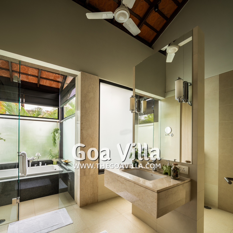 Bedrooms – Ariana 2 is spread over two floors, with the ground floor having the common areas and one bedroom. It opens to the pool terrace. The first floor has the master suite and one more bedroom. They both open to private balconies with seating areas. All three bedrooms are equally impressive. They have large king beds, satellite televisions, wardrobes, study tables, dressing areas, and bedside reading lights. They are all ensuite and air-conditioned.