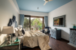 Dining, Kitchen – The dining area is located on the other corner of the living-dining space. It features an antique table and turquoise blue chairs that reflect the color of the sea. This part of the villa is also air-conditioned. The kitchen is in the next room. It has a double-door refrigerator, microwave, toaster, kettle, chimney, and other appliances.