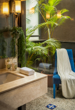 Bathrooms – The ensuite bathrooms are huge too. The two on the upper floor both have bathtubs. The ground floor bathroom has a shower cubicle and a unique outdoor area under shade with chairs. Take a break and relax here in complete privacy.