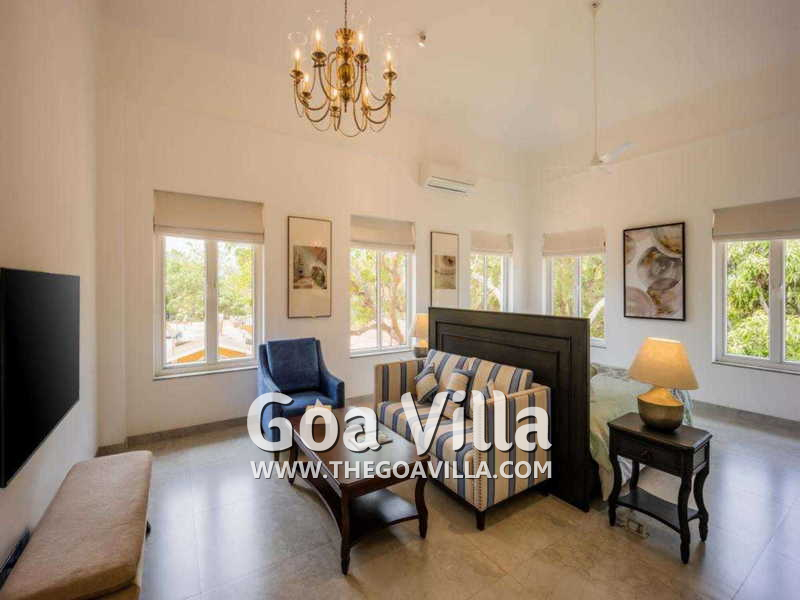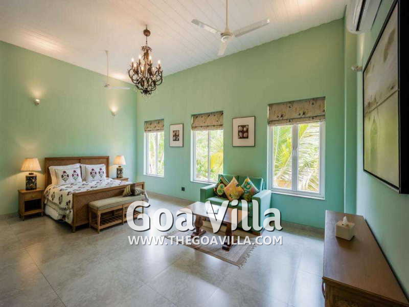This is a luxury holiday villa for 12 guests in the sleepy village of Assagao in North Goa. It has quaint streets, whitewashed churches, and traditional Goan homes. Enjoy a luxury stay in a serene and green neighborhood.