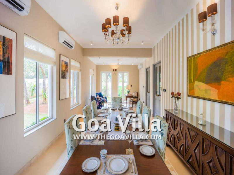 Villa Arista has 7 bedrooms for 12 guests. It is a large villa for an extended family that is celebrating a special event, like a birthday or anniversary, or perhaps an annual reunion. Everything about this property is luxurious. You will have your own private swimming pool, multiple lounging and dining areas, air-conditioning, and much more. A holiday in Goa has never been so luxurious!