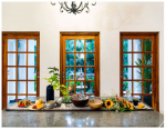 Dining, Kitchen – The dining area is located in the other corner of this room. The room has multiple air-conditioners, so each section is properly covered. Villa Basilo has a large kitchen with a double-door refrigerator, freezer, kettle, oven, microwave, and provides a home-like cooking space. Pots and pans are provided.