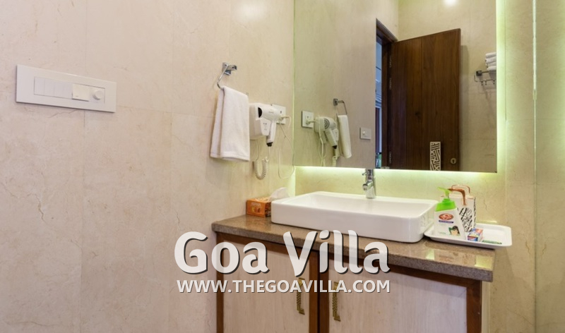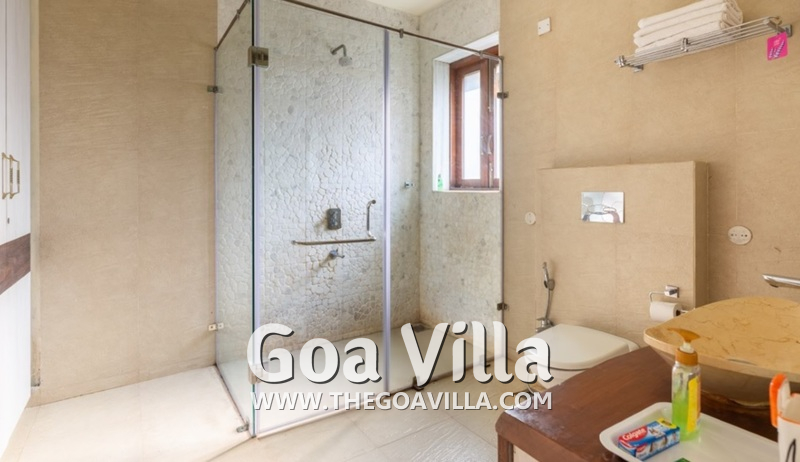 Bathrooms – All the bedrooms in Villa Budh are ensuite. They have impressive tiled walls, large mirrors, and showers. One has a bathtub. Towels and toiletries are provided.