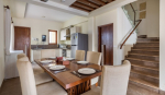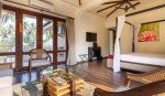 Dining, Kitchen – The dining table is placed at one side of the ground floor living room. The table seats six guests. The villa’s large kitchen is next to this. This is an open kitchen that leads to the dining area and then the living space. You will find everything here to cook your meals. Of course, you can also eat outside, order food, or ask for a cook.