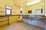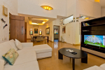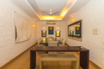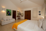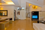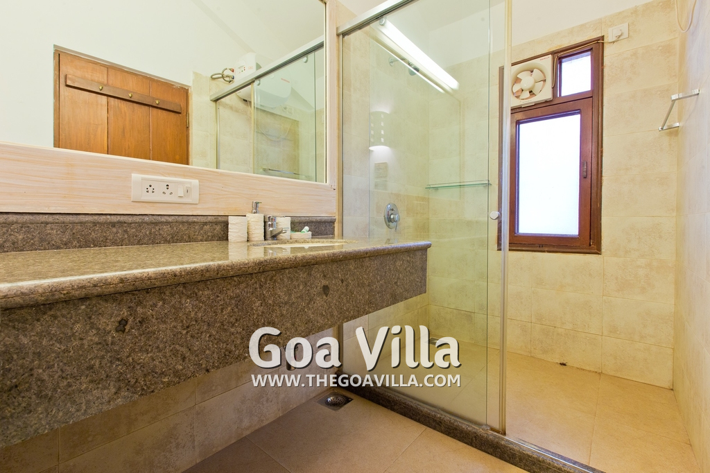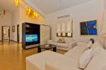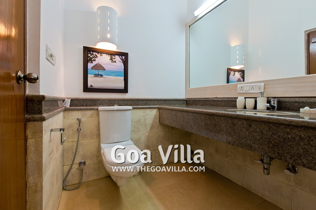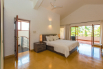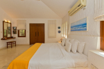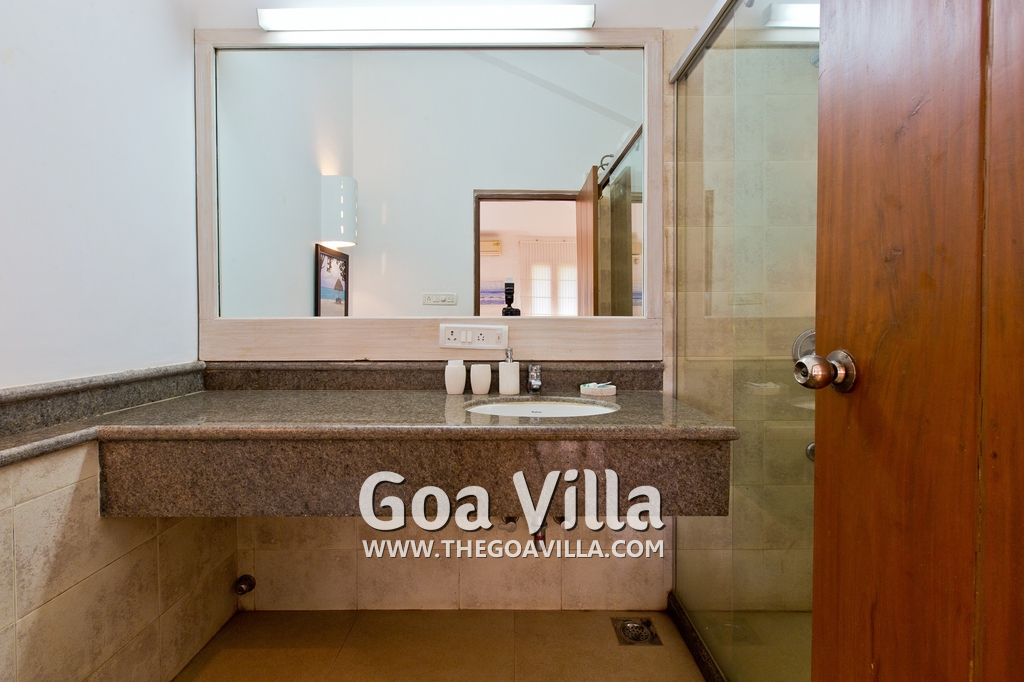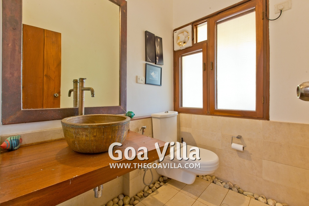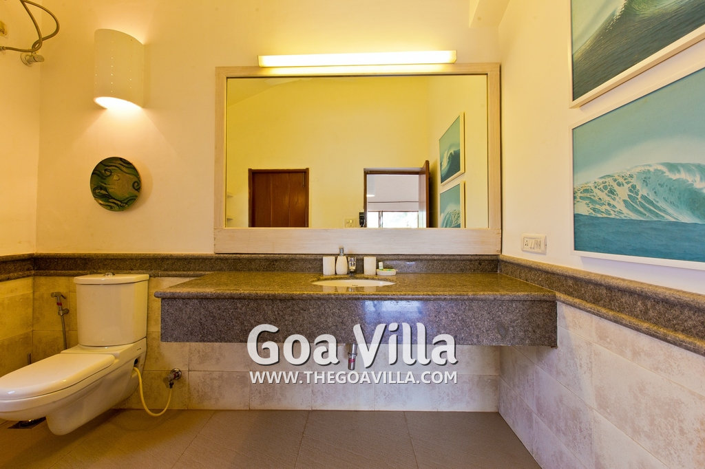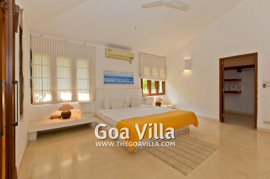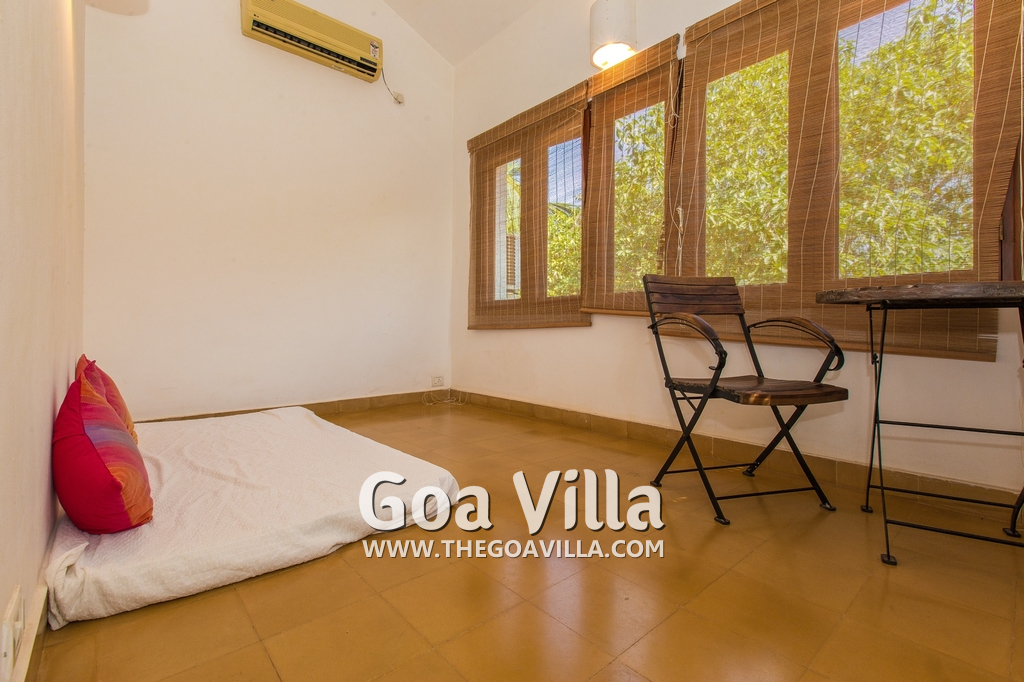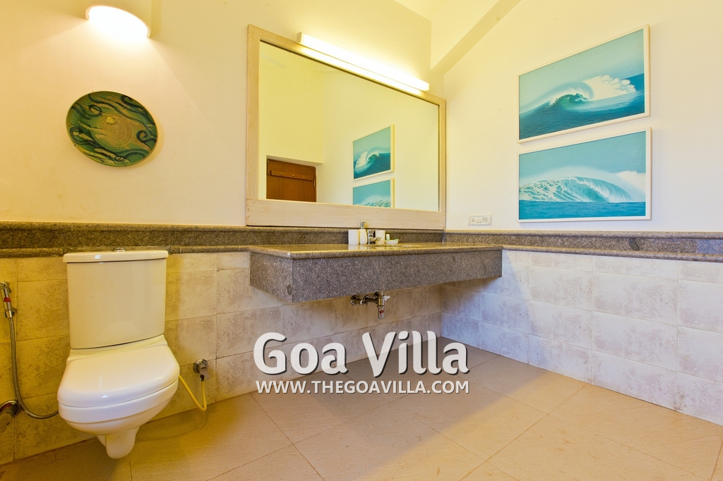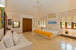 Bedrooms – Villa Casa Delmar has 4 bedrooms. 3 of them are en-suite. They are all air-conditioned but also has ceiling fans. The bedrooms have modern furnishing with large beds and extra cushions for comfort, side tables, lamp shades, wardrobe, sofa, and paintings on the wall. Whitewashed walls provide a soothing touch. The first bedroom without attached bath has a floor sleeping area with a comfortable mattress. The master bedroom is larger in size and also has a recliner. Beautiful balcony outside with sitting, providing nature views.