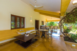 Swimming Pool – One of the highlights of this property, the large private swimming pool has a lush garden all around. There are many tall trees and flowering plants. You can lie-down on a hammock or relax at one of the chairs or sun beds. Breeze blows in from the sea, making this a great place for relaxation.