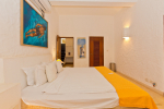 Casa Delmar is a 4-bedroom private villa for rent. A stunning property in the heart of North Goa, it offers high-end amenities and facilities for a luxury stay. Designed aesthetically, it brings together modern elements and traditional Portuguese styles to present a holiday home that is perfect in all respects. The living/dining room is large and swanky. It has a fully equipped kitchen. 3 of the 4 bedrooms are en-suite. It is located in a busy neighborhood, but you will have complete privacy and peace once you are inside this luxury estate.