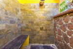Bathrooms – The bathrooms are functional. There are modern faucets, large mirrors, sink, towel rack, and shower cubicle with rainwater shower. One of the en-suite bathrooms have a unique open plan shower area where you can take a bath outside.