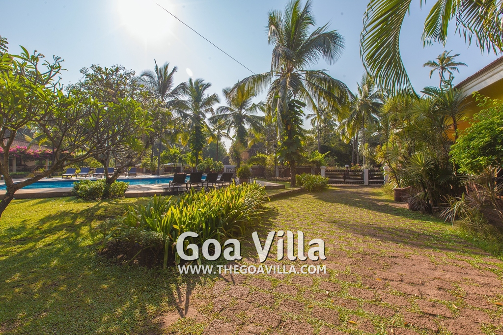 Holiday villa for rent in Candolim with traditional Goan elements. Aesthetically designed and luxuriously appointed. Huge garden with private swimming pool. All amenities and facilities for a luxury vacation. Only 50 meters from the beach.