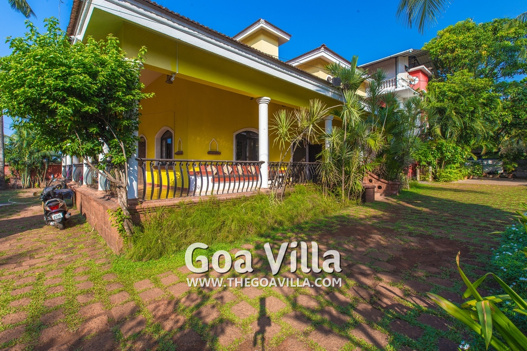 The villa is located in Candolim, very close to the beach. It is just behind a row of trees. This is a busy neighborhood where you will find many beach shacks, restaurants, bars, nightclubs, shops, and super markets. Water sports. The tourist infrastructure is well developed. The Calangute beach is also close. Also visit the Aguada Fort.