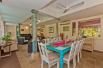 Kitchen, Dining – The dining area is at one side of the living room. Table with sitting for 8 guests. Casa Flora has a fully equipped kitchen where you can prepare meals if you like. You can use the large double-door refrigerator, toaster, cooking station, kettle, and all utensils and cookware.