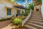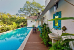 Casa Flora is a charming 4-bedroom private villa for rent at Anjuna in North Goa. This French-style estate is tucked away in a quiet corner where you will find complete peace and greenery everywhere. It has a private swimming pool, heritage bedrooms with antique furniture, private balconies, a fully equipped kitchen, and a unique living space overlooking the pool. Stay in this luxury property and spend a private, leisurely vacation in Goa, away from the hustle and bustle of touristy areas.