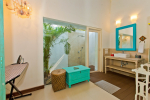 Bathrooms – The bathrooms are unique. They come with modern faucets, antique furniture, mirror, and closed or open-air shower areas with rainwater showers. Luxury toiletries and towels are provided.