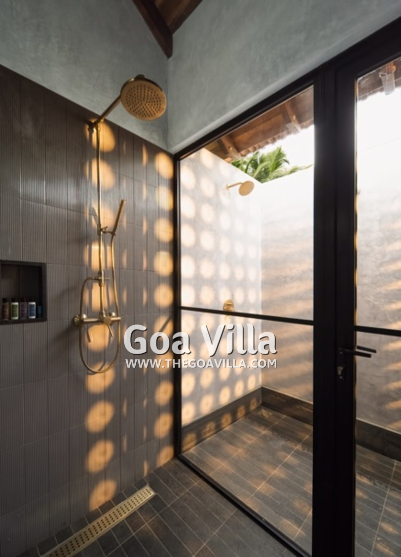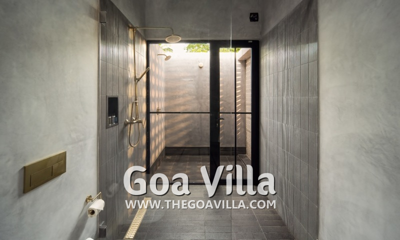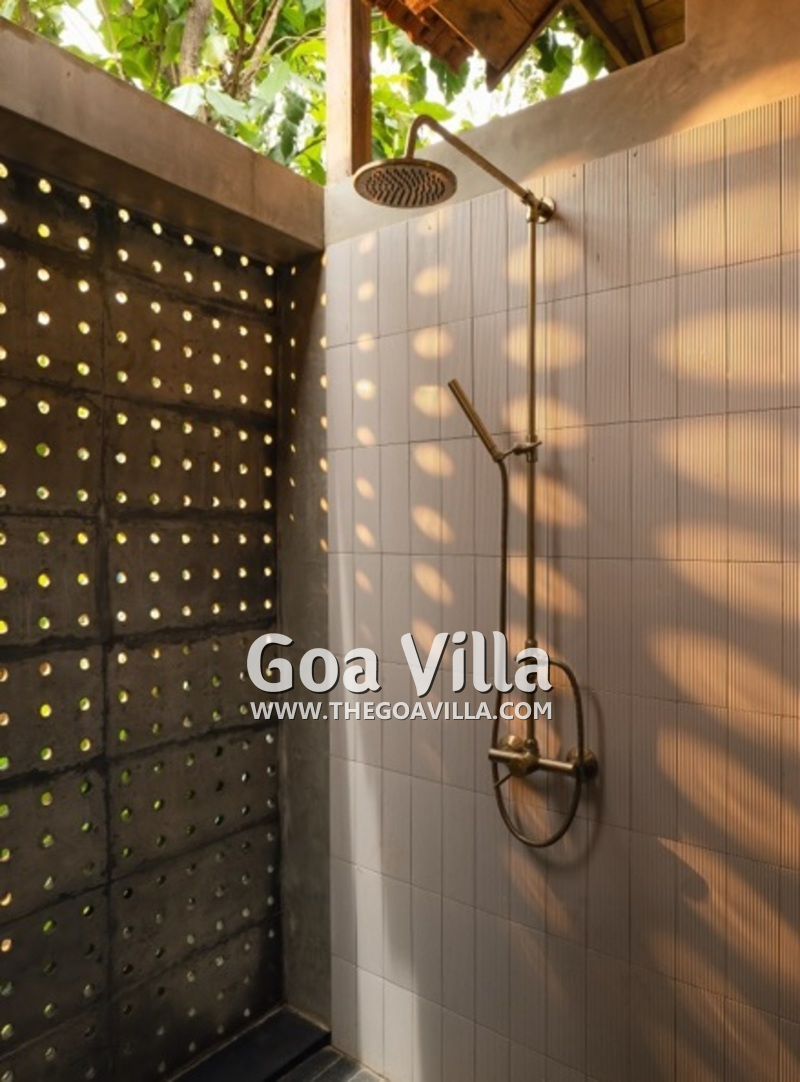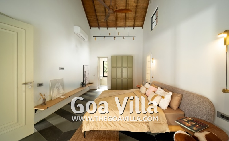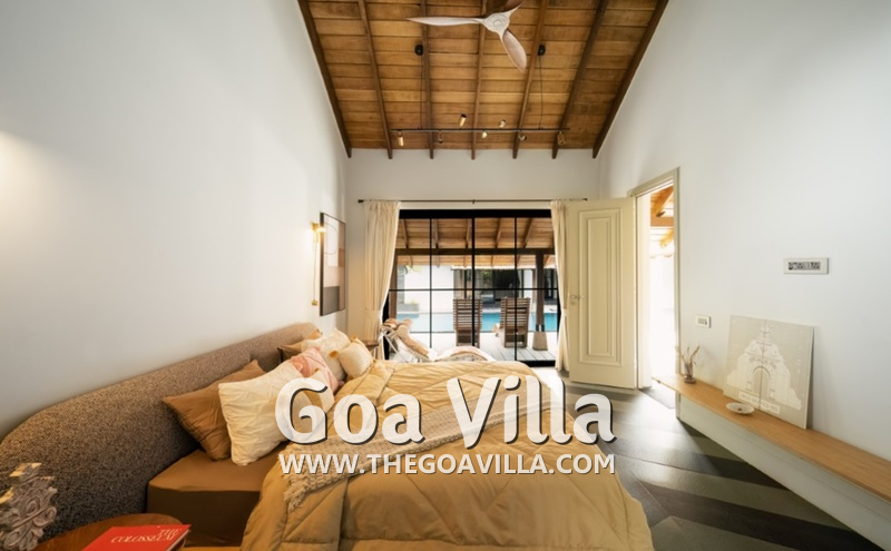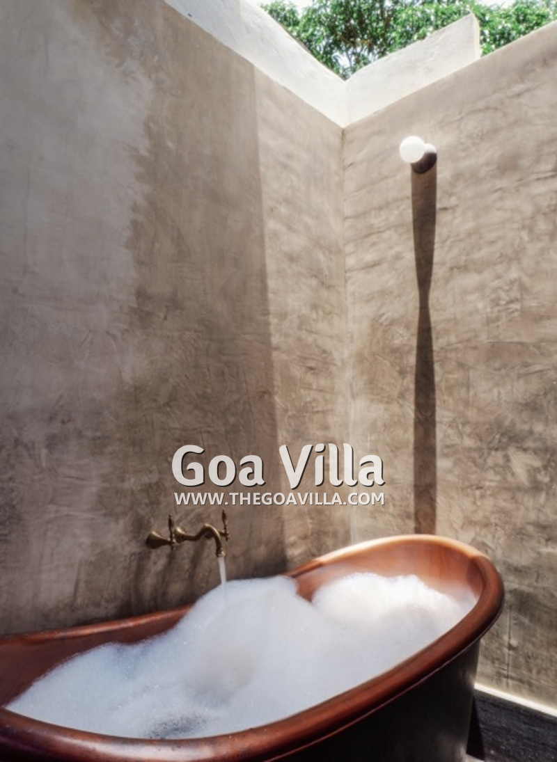 Bedrooms – The house with 4 bedrooms is built on a single level, so all the guests will stay close during their Goa vacation. The bedrooms all open to a traditional covered verandah and the swimming pool. They have large king beds with high-quality linen and extra pillows for sleeping comfort. There are large wardrobes and bedside tables with reading lamps. Overall, they all feature the same décor, so it doesn’t matter where each guest stays.