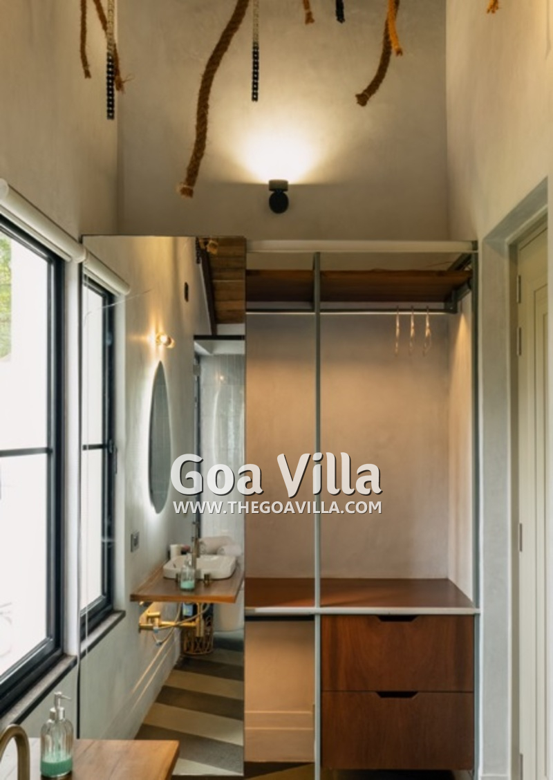 This North Goa property has a fantastic location. This is a village neighborhood where you will find many tall trees. There is a dry fruit store on the opposite side. If you want to eat outside, you can easily walk down to Dacha and Caava Courtyard – they are both very close. of course, there are many more options at Anjuna and Vagator beach, which are less than 5 minutes by car or bike.