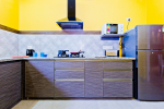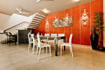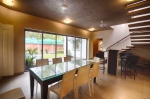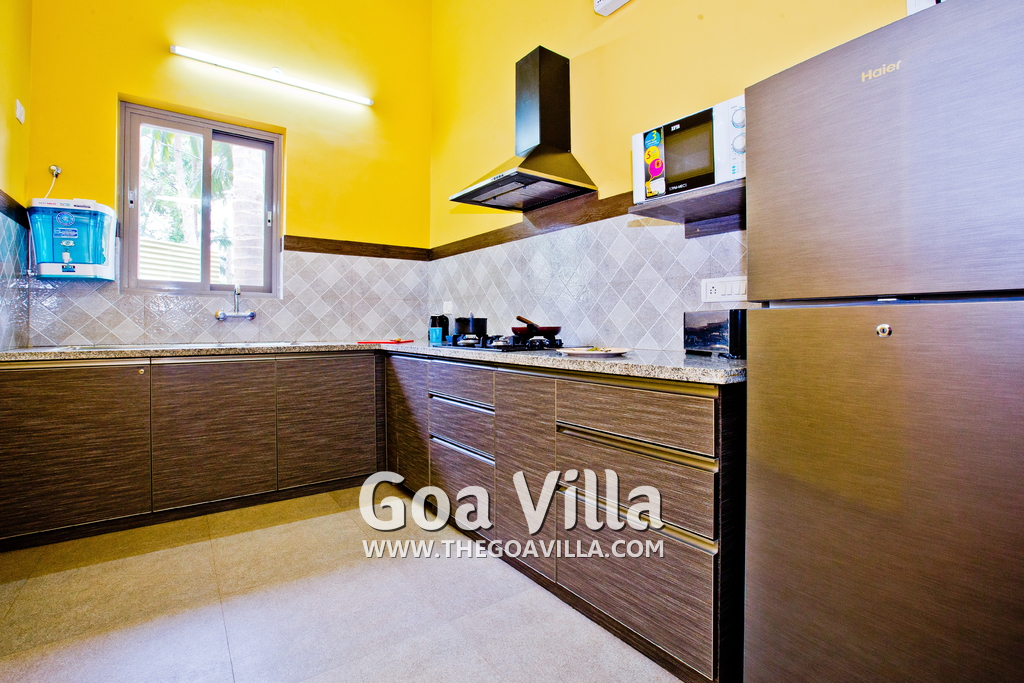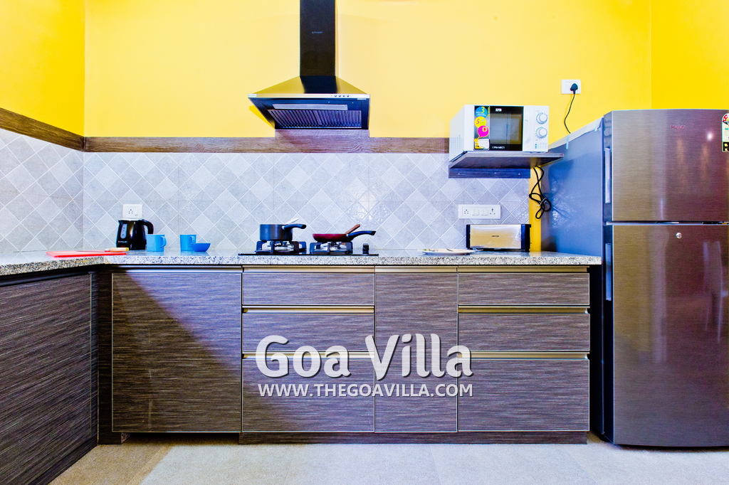 - Adjacent to the living room is an eight seater dining table overlooking the garden which will have you making long post meals conversations. There is a well equipped kitchen on the same level with all modern appliances like fridge, microwave, hob, chimney and all necessary cookware.