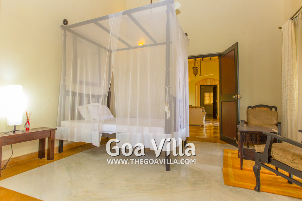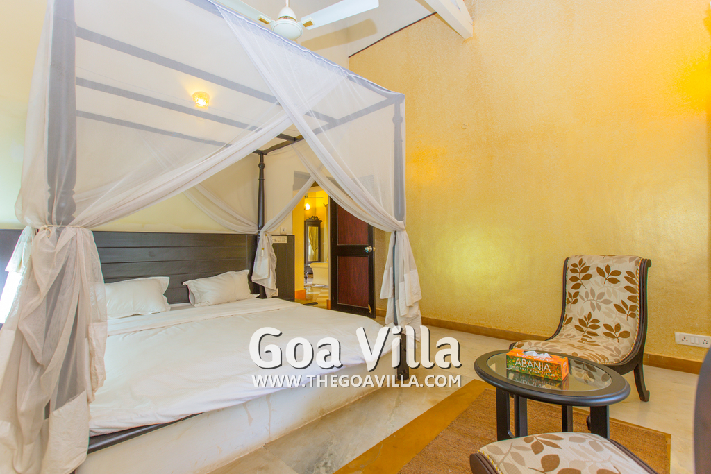 Villa with private pool fore rent in Mapusa, North Goa. It has 4 bedrooms. Located in a quiet picturesque area away from roads and noisy areas. It offers a wide range of services — from a personal chef to a rental car. Great for family holidays in Goa.