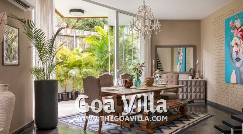 A brand new villa, Elgin is chic and sophisticated in every way. It is a handcrafted 3-bedroom villa for rent in North Goa where you will enjoy the highest quality of luxury living. You will see the magic everywhere. High-quality furnishings, soothing colors that are pleasing to the eyes, a lush tropical garden, artwork spread throughout the house… everything has received the personal attention and care of the villa owner. Modern-day comforts like air-conditioning, BBQ equipment, bathtubs, a private pool, satellite television, DVD player, and a hairdryer provide all forms of creature comforts, which you will find only in star-category resorts.